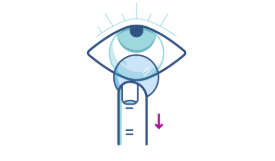 Porta lentamente l'indice verso l'occhio fino a toccare il bordo inferiore della lente a contatto. Poi fai scivolare la lente a contatto in basso verso la parte bianca dell’occhio.