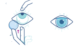 Tieni la mano ferma e guarda verso l'alto mentre inserisci la lente a contatto nell'occhio, poi rilascia lentamente la palpebra e chiudi l'occhio per alcuni istanti per consentire alla lente a contatto di posizionarsi. Ripeti la stessa operazione con l'altro occhio.