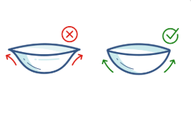 Metti la lente sulla punta del dito e osservala controluce. Se i bordi flettono verso l'esterno, la lente a contatto è capovolta. Se invece la lente a contatto ha la forma di una coppa con i bordi rivolti verso l'alto, è pronta per essere indossata.